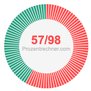 Was ist 57/98 in Prozent? Wie viel ist 57/98 in Prozent? Wie viel Prozent sind 57/98? Hier erklären und zeigen wir Ihnen, wie Sie 57/98 in Prozent berechnen und umrechnen können.