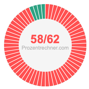 Was ist 58/62 in Prozent? Wie viel ist 58/62 in Prozent? Wie viel Prozent sind 58/62? Hier erklären und zeigen wir Ihnen, wie Sie 58/62 in Prozent berechnen und umrechnen können.