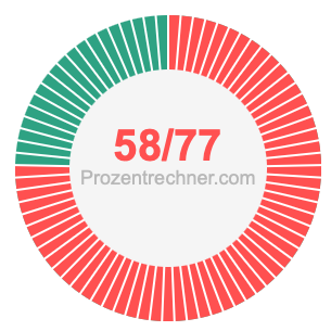 Was ist 58/77 in Prozent? Wie viel ist 58/77 in Prozent? Wie viel Prozent sind 58/77? Hier erklären und zeigen wir Ihnen, wie Sie 58/77 in Prozent berechnen und umrechnen können.