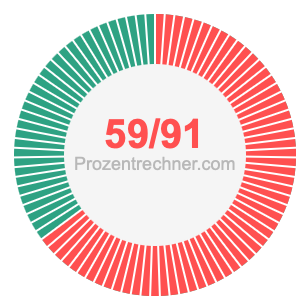 Was ist 59/91 in Prozent? Wie viel ist 59/91 in Prozent? Wie viel Prozent sind 59/91? Hier erklären und zeigen wir Ihnen, wie Sie 59/91 in Prozent berechnen und umrechnen können.