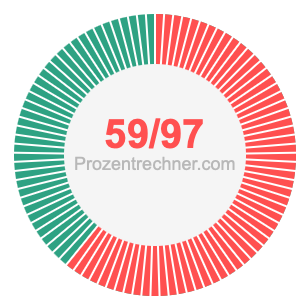Was ist 59/97 in Prozent? Wie viel ist 59/97 in Prozent? Wie viel Prozent sind 59/97? Hier erklären und zeigen wir Ihnen, wie Sie 59/97 in Prozent berechnen und umrechnen können.