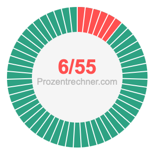 Was ist 6/55 in Prozent? Wie viel ist 6/55 in Prozent? Wie viel Prozent sind 6/55? Hier erklären und zeigen wir Ihnen, wie Sie 6/55 in Prozent berechnen und umrechnen können.