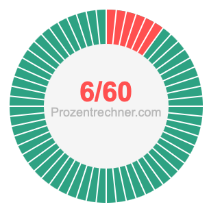 Was ist 6/60 in Prozent? Wie viel ist 6/60 in Prozent? Wie viel Prozent sind 6/60? Hier erklären und zeigen wir Ihnen, wie Sie 6/60 in Prozent berechnen und umrechnen können.