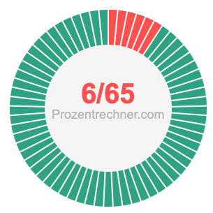 Was ist 6/65 in Prozent? Wie viel ist 6/65 in Prozent? Wie viel Prozent sind 6/65? Hier erklären und zeigen wir Ihnen, wie Sie 6/65 in Prozent berechnen und umrechnen können.