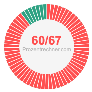 Was ist 60/67 in Prozent? Wie viel ist 60/67 in Prozent? Wie viel Prozent sind 60/67? Hier erklären und zeigen wir Ihnen, wie Sie 60/67 in Prozent berechnen und umrechnen können.