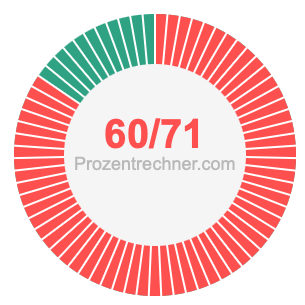 Was ist 60/71 in Prozent? Wie viel ist 60/71 in Prozent? Wie viel Prozent sind 60/71? Hier erklären und zeigen wir Ihnen, wie Sie 60/71 in Prozent berechnen und umrechnen können.