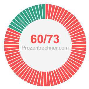 Was ist 60/73 in Prozent? Wie viel ist 60/73 in Prozent? Wie viel Prozent sind 60/73? Hier erklären und zeigen wir Ihnen, wie Sie 60/73 in Prozent berechnen und umrechnen können.