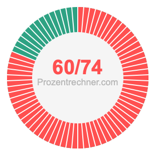 Was ist 60/74 in Prozent? Wie viel ist 60/74 in Prozent? Wie viel Prozent sind 60/74? Hier erklären und zeigen wir Ihnen, wie Sie 60/74 in Prozent berechnen und umrechnen können.