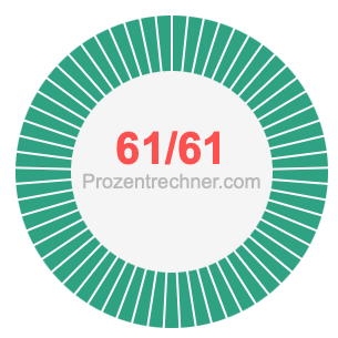 Was ist 61/61 in Prozent? Wie viel ist 61/61 in Prozent? Wie viel Prozent sind 61/61? Hier erklären und zeigen wir Ihnen, wie Sie 61/61 in Prozent berechnen und umrechnen können.