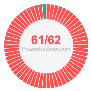 Was ist 61/62 in Prozent? Wie viel ist 61/62 in Prozent? Wie viel Prozent sind 61/62? Hier erklären und zeigen wir Ihnen, wie Sie 61/62 in Prozent berechnen und umrechnen können.