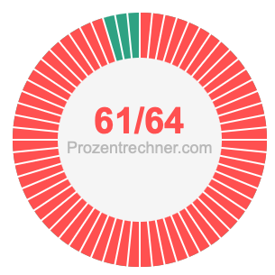 Was ist 61/64 in Prozent? Wie viel ist 61/64 in Prozent? Wie viel Prozent sind 61/64? Hier erklären und zeigen wir Ihnen, wie Sie 61/64 in Prozent berechnen und umrechnen können.