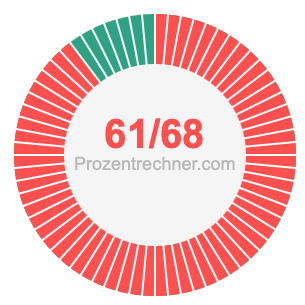 Was ist 61/68 in Prozent? Wie viel ist 61/68 in Prozent? Wie viel Prozent sind 61/68? Hier erklären und zeigen wir Ihnen, wie Sie 61/68 in Prozent berechnen und umrechnen können.