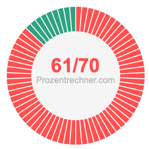 Was ist 61/70 in Prozent? Wie viel ist 61/70 in Prozent? Wie viel Prozent sind 61/70? Hier erklären und zeigen wir Ihnen, wie Sie 61/70 in Prozent berechnen und umrechnen können.