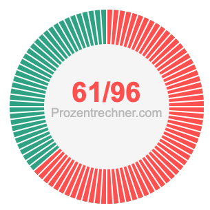 Was ist 61/96 in Prozent? Wie viel ist 61/96 in Prozent? Wie viel Prozent sind 61/96? Hier erklären und zeigen wir Ihnen, wie Sie 61/96 in Prozent berechnen und umrechnen können.