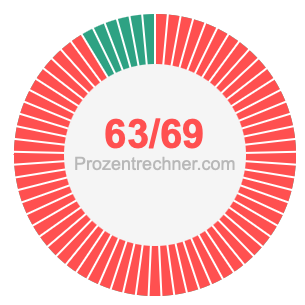 Was ist 63/69 in Prozent? Wie viel ist 63/69 in Prozent? Wie viel Prozent sind 63/69? Hier erklären und zeigen wir Ihnen, wie Sie 63/69 in Prozent berechnen und umrechnen können.