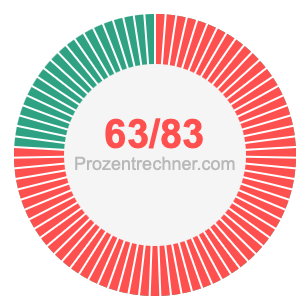 Was ist 63/83 in Prozent? Wie viel ist 63/83 in Prozent? Wie viel Prozent sind 63/83? Hier erklären und zeigen wir Ihnen, wie Sie 63/83 in Prozent berechnen und umrechnen können.