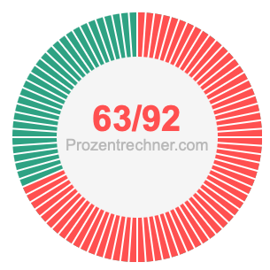 Was ist 63/92 in Prozent? Wie viel ist 63/92 in Prozent? Wie viel Prozent sind 63/92? Hier erklären und zeigen wir Ihnen, wie Sie 63/92 in Prozent berechnen und umrechnen können.