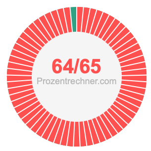 Was ist 64/65 in Prozent? Wie viel ist 64/65 in Prozent? Wie viel Prozent sind 64/65? Hier erklären und zeigen wir Ihnen, wie Sie 64/65 in Prozent berechnen und umrechnen können.