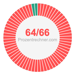 Was ist 64/66 in Prozent? Wie viel ist 64/66 in Prozent? Wie viel Prozent sind 64/66? Hier erklären und zeigen wir Ihnen, wie Sie 64/66 in Prozent berechnen und umrechnen können.