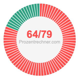 64/79 ist ein Bruch, der 64 von 79 bedeutet, und Prozent bedeutet etwas von 100. Wir können also die folgende Gleichung aufstellen, um 64/79 als Prozentzahl zu erhalten: