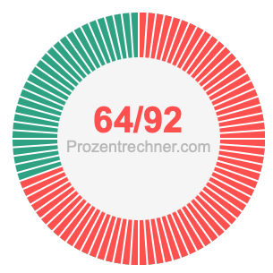 Was ist 64/92 in Prozent? Wie viel ist 64/92 in Prozent? Wie viel Prozent sind 64/92? Hier erklären und zeigen wir Ihnen, wie Sie 64/92 in Prozent berechnen und umrechnen können.