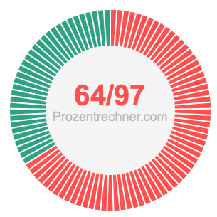 Was ist 64/97 in Prozent? Wie viel ist 64/97 in Prozent? Wie viel Prozent sind 64/97? Hier erklären und zeigen wir Ihnen, wie Sie 64/97 in Prozent berechnen und umrechnen können.