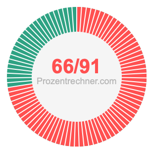 Was ist 66/91 in Prozent? Wie viel ist 66/91 in Prozent? Wie viel Prozent sind 66/91? Hier erklären und zeigen wir Ihnen, wie Sie 66/91 in Prozent berechnen und umrechnen können.