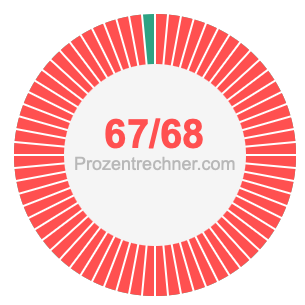 Was ist 67/68 in Prozent? Wie viel ist 67/68 in Prozent? Wie viel Prozent sind 67/68? Hier erklären und zeigen wir Ihnen, wie Sie 67/68 in Prozent berechnen und umrechnen können.