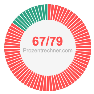 Was ist 67/79 in Prozent? Wie viel ist 67/79 in Prozent? Wie viel Prozent sind 67/79? Hier erklären und zeigen wir Ihnen, wie Sie 67/79 in Prozent berechnen und umrechnen können.