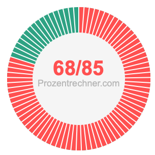 Was ist 68/85 in Prozent? Wie viel ist 68/85 in Prozent? Wie viel Prozent sind 68/85? Hier erklären und zeigen wir Ihnen, wie Sie 68/85 in Prozent berechnen und umrechnen können.