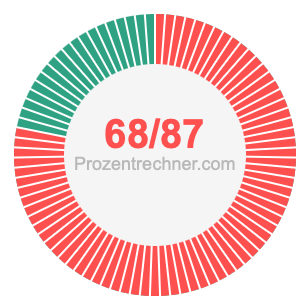 Was ist 68/87 in Prozent? Wie viel ist 68/87 in Prozent? Wie viel Prozent sind 68/87? Hier erklären und zeigen wir Ihnen, wie Sie 68/87 in Prozent berechnen und umrechnen können.