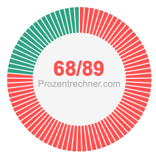 Was ist 68/89 in Prozent? Wie viel ist 68/89 in Prozent? Wie viel Prozent sind 68/89? Hier erklären und zeigen wir Ihnen, wie Sie 68/89 in Prozent berechnen und umrechnen können.