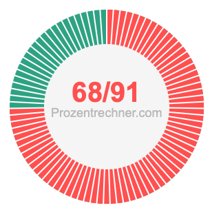 Was ist 68/91 in Prozent? Wie viel ist 68/91 in Prozent? Wie viel Prozent sind 68/91? Hier erklären und zeigen wir Ihnen, wie Sie 68/91 in Prozent berechnen und umrechnen können.