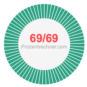 Was ist 69/69 in Prozent? Wie viel ist 69/69 in Prozent? Wie viel Prozent sind 69/69? Hier erklären und zeigen wir Ihnen, wie Sie 69/69 in Prozent berechnen und umrechnen können.