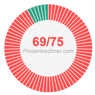 Was ist 69/75 in Prozent? Wie viel ist 69/75 in Prozent? Wie viel Prozent sind 69/75? Hier erklären und zeigen wir Ihnen, wie Sie 69/75 in Prozent berechnen und umrechnen können.