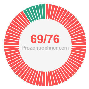 Was ist 69/76 in Prozent? Wie viel ist 69/76 in Prozent? Wie viel Prozent sind 69/76? Hier erklären und zeigen wir Ihnen, wie Sie 69/76 in Prozent berechnen und umrechnen können.
