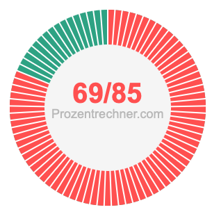Was ist 69/85 in Prozent? Wie viel ist 69/85 in Prozent? Wie viel Prozent sind 69/85? Hier erklären und zeigen wir Ihnen, wie Sie 69/85 in Prozent berechnen und umrechnen können.