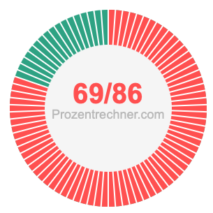 Was ist 69/86 in Prozent? Wie viel ist 69/86 in Prozent? Wie viel Prozent sind 69/86? Hier erklären und zeigen wir Ihnen, wie Sie 69/86 in Prozent berechnen und umrechnen können.