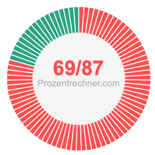 Was ist 69/87 in Prozent? Wie viel ist 69/87 in Prozent? Wie viel Prozent sind 69/87? Hier erklären und zeigen wir Ihnen, wie Sie 69/87 in Prozent berechnen und umrechnen können.