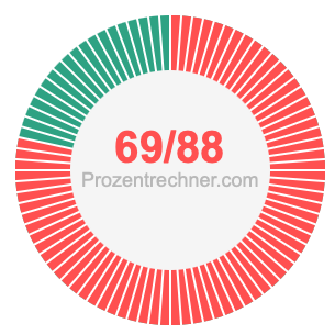 Was ist 69/88 in Prozent? Wie viel ist 69/88 in Prozent? Wie viel Prozent sind 69/88? Hier erklären und zeigen wir Ihnen, wie Sie 69/88 in Prozent berechnen und umrechnen können.