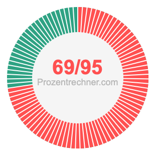 Was ist 69/95 in Prozent? Wie viel ist 69/95 in Prozent? Wie viel Prozent sind 69/95? Hier erklären und zeigen wir Ihnen, wie Sie 69/95 in Prozent berechnen und umrechnen können.