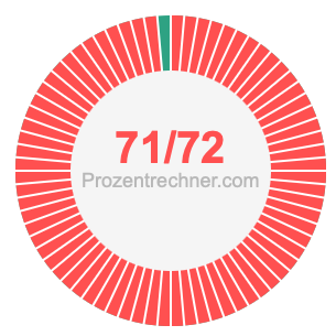 Was ist 71/72 in Prozent? Wie viel ist 71/72 in Prozent? Wie viel Prozent sind 71/72? Hier erklären und zeigen wir Ihnen, wie Sie 71/72 in Prozent berechnen und umrechnen können.