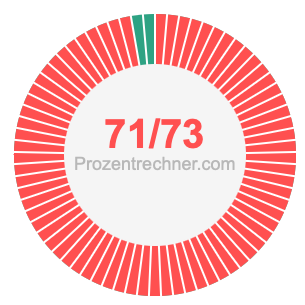 Was ist 71/73 in Prozent? Wie viel ist 71/73 in Prozent? Wie viel Prozent sind 71/73? Hier erklären und zeigen wir Ihnen, wie Sie 71/73 in Prozent berechnen und umrechnen können.