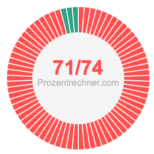 Was ist 71/74 in Prozent? Wie viel ist 71/74 in Prozent? Wie viel Prozent sind 71/74? Hier erklären und zeigen wir Ihnen, wie Sie 71/74 in Prozent berechnen und umrechnen können.