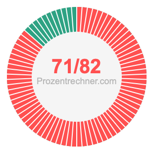 Was ist 71/82 in Prozent? Wie viel ist 71/82 in Prozent? Wie viel Prozent sind 71/82? Hier erklären und zeigen wir Ihnen, wie Sie 71/82 in Prozent berechnen und umrechnen können.