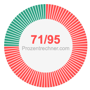 Was ist 71/95 in Prozent? Wie viel ist 71/95 in Prozent? Wie viel Prozent sind 71/95? Hier erklären und zeigen wir Ihnen, wie Sie 71/95 in Prozent berechnen und umrechnen können.