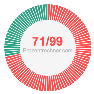 Was ist 71/99 in Prozent? Wie viel ist 71/99 in Prozent? Wie viel Prozent sind 71/99? Hier erklären und zeigen wir Ihnen, wie Sie 71/99 in Prozent berechnen und umrechnen können.