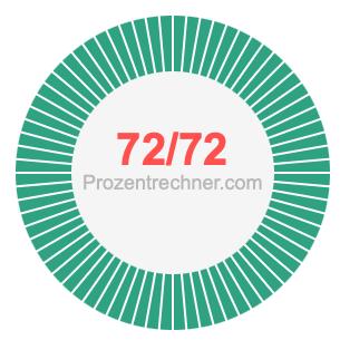 Was ist 72/72 in Prozent? Wie viel ist 72/72 in Prozent? Wie viel Prozent sind 72/72? Hier erklären und zeigen wir Ihnen, wie Sie 72/72 in Prozent berechnen und umrechnen können.