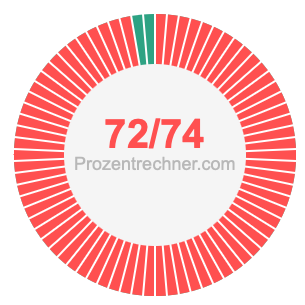 Was ist 72/74 in Prozent? Wie viel ist 72/74 in Prozent? Wie viel Prozent sind 72/74? Hier erklären und zeigen wir Ihnen, wie Sie 72/74 in Prozent berechnen und umrechnen können.