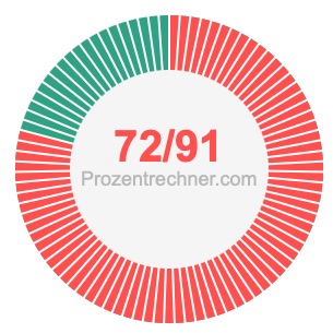Was ist 72/91 in Prozent? Wie viel ist 72/91 in Prozent? Wie viel Prozent sind 72/91? Hier erklären und zeigen wir Ihnen, wie Sie 72/91 in Prozent berechnen und umrechnen können.